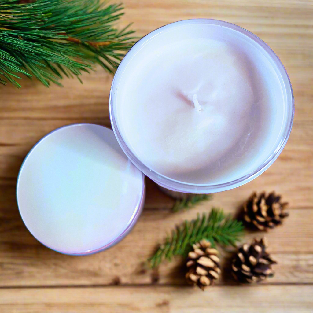 Cool evergreen notes of fir and spruce are warmed by subtle citrus, clove, and smoky embers. This balanced scent captures the quiet glow of winter — crisp, calming, and softly spiced.